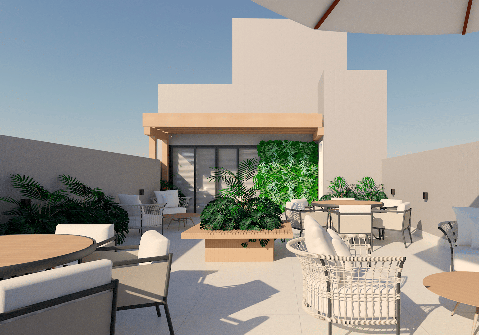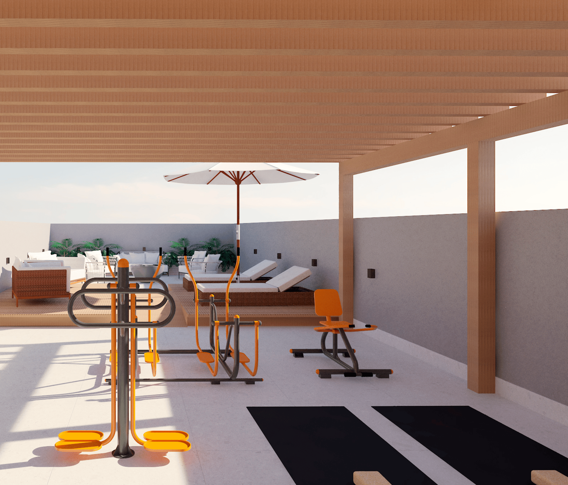 Salão de festas, área de convivência, espaço pet, espaço fitness, tudo isso no rooftop do prédio.